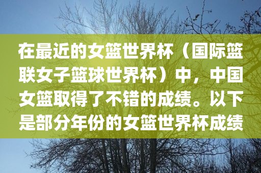 在最近的女篮世界杯(国际篮联女子篮球世界杯)中,中国女篮取得了不错的成绩。以下是部分年份的女篮世界杯成绩