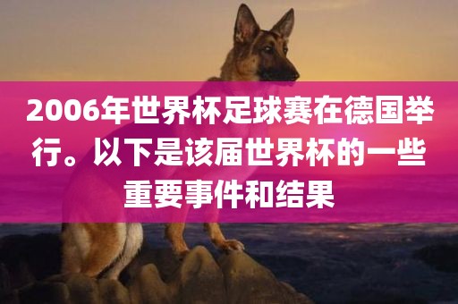 2006年世界杯足球赛在德国举行。以下是该届世界杯的一些重要事件和结果