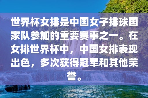 中国女排是一支实力强大、备受关注的队伍,在世界杯女排比赛中也有着非常出色的表现。