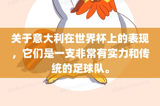 关于意大利在世界杯上的表现,它们是一支非常有实力和传统的足球队。