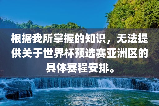 根据我所掌握的知识,无法提供关于世界杯预选赛亚洲区的具体赛程安排。